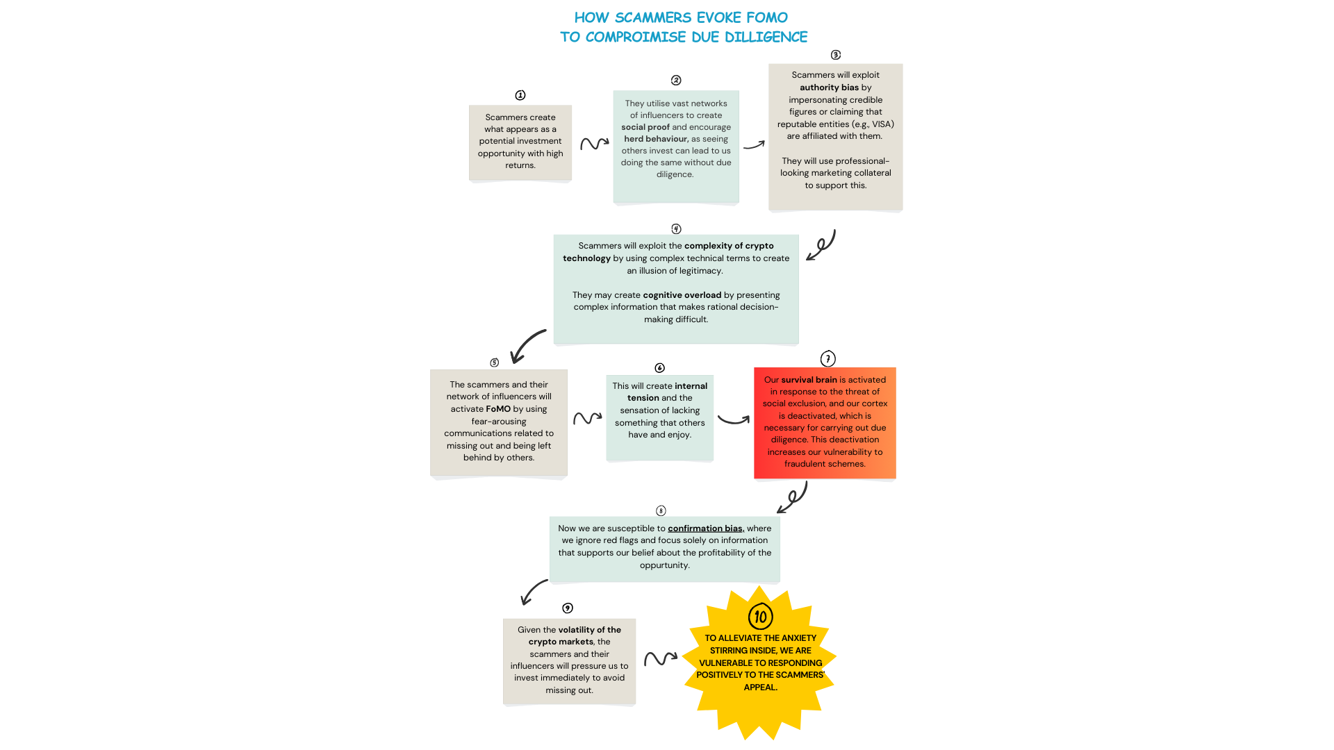 These scams share similarities to traditional fraud. However, my research suggests that Fear of Missing Out (FoMO) in crypto contexts is particularly pervasive. Scammers employ a range of sophisticated tactics to create a sense of FoMO and a fabricated sense of urgency.