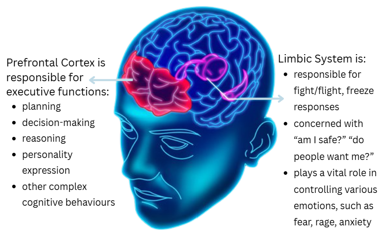 Whenever humans are confronted with a threat, the limbic system becomes dominant, overriding the prefrontal cortex. We have evolved this way to ensure we are primed to overcome immediate threats to our safety. This works perfectly with physical threats. However, there are times we may experience a mismatch between a modern threat scenario and our evolutionary fear responses.